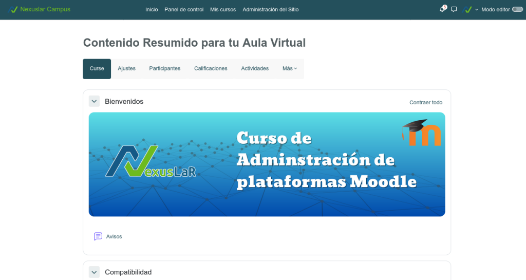 También la ventaja de agregar diferentes Plugins y recursos que desee para optar con otras opciones dentro de cada aula creada.